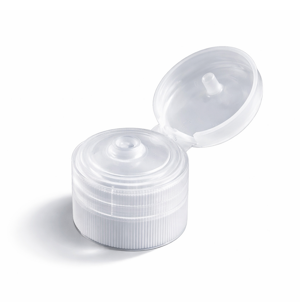 The 24 mm Natural Flip Top Cap is designed for ease of use and practicality in dispensing liquid products. Its straightforward design makes it a versatile choice for a variety of applications, from personal care items to household liquids.