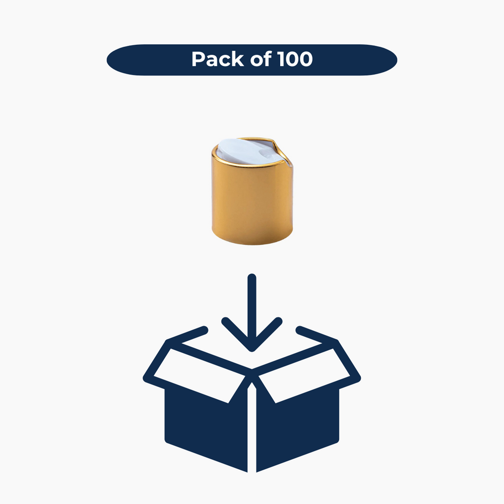 The 28/410 mm White Gold Collar Disc Top Cap is a stylish and practical closure that enhances the look and functionality of your packaging. With its eye-catching gold collar, this cap combines elegance with ease of use.