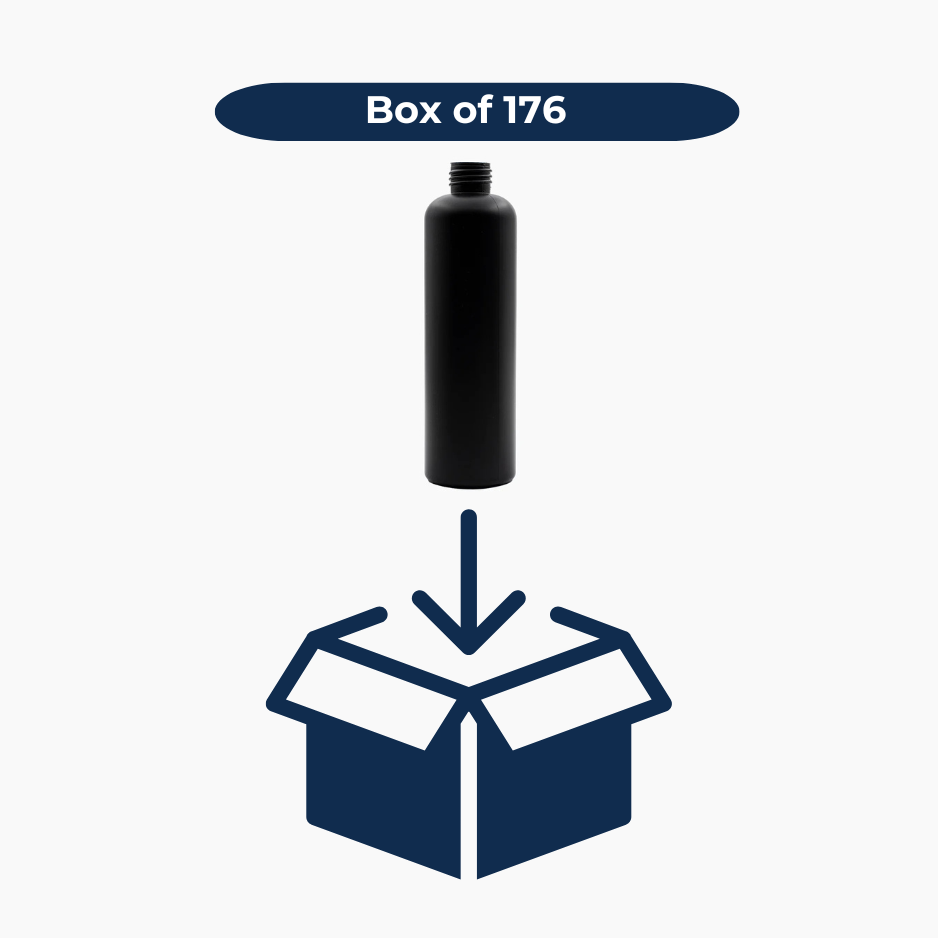 250ml HDPE Boston Tall Bottle (24mm neck) - No Closure - Black