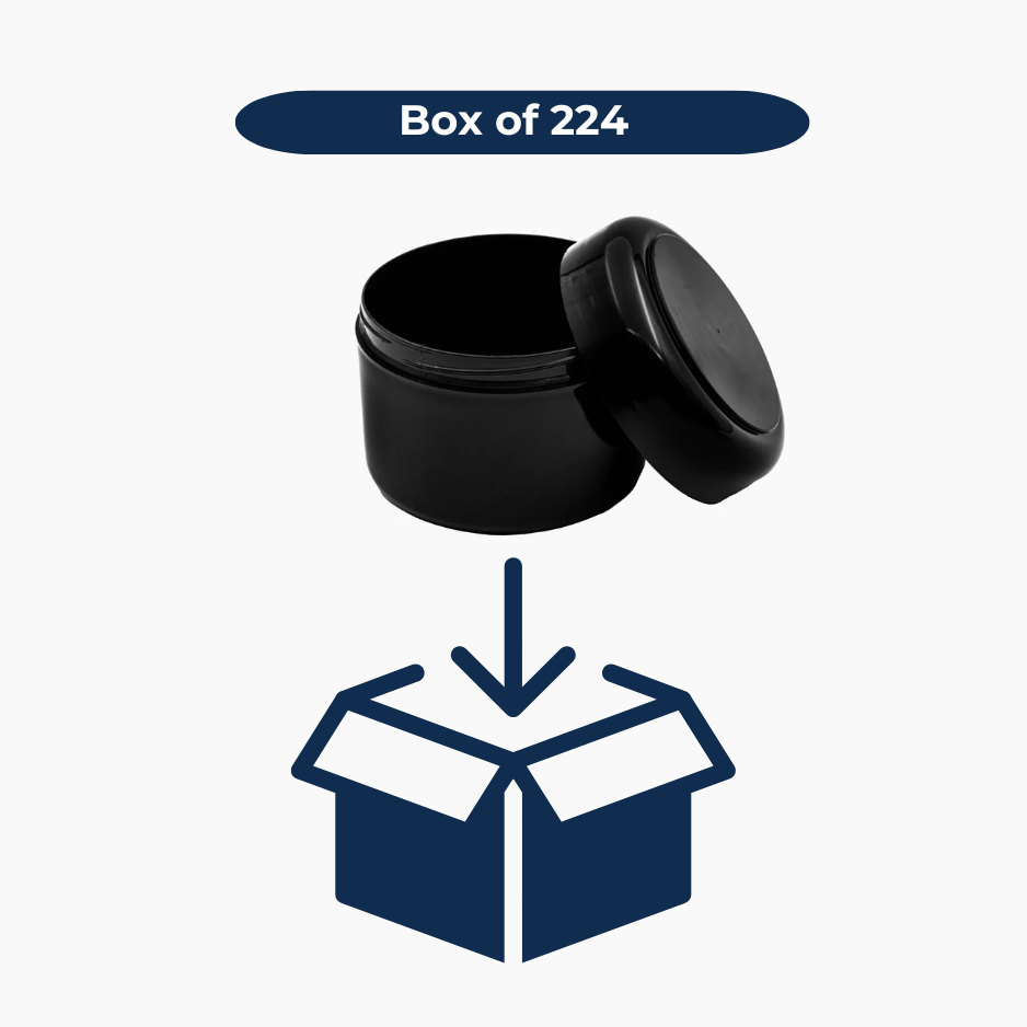 The 125 g Euro Jar with Lid (Black) is a sleek and sophisticated container, perfect for a variety of cosmetic and skincare products. Its elegant black finish adds a touch of luxury, while the secure lid keeps contents fresh and protected. The versatile design makes it ideal for creams, balms, and scrubs, catering to both personal and professional needs.