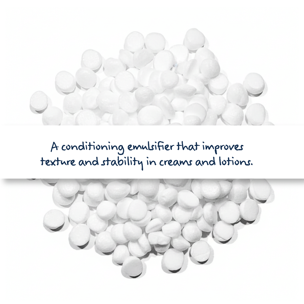 Not to be confused with "Genamin BTSM", BTMS-25 is a natural, conditioning emulsifier used in skin and hair care. It is gentle on the skin and hair, and can be used in creams and lotions to provide a soft, powdery feel to the skin. It can also be used in making Shampoo bars, Conditioner bars, Leave-in Conditioner sprays, and emulsified Sugar Scrubs.