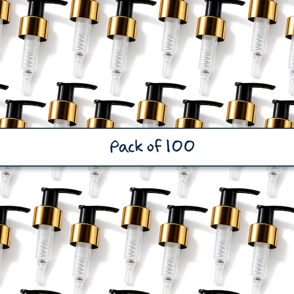 The Gold Collar Lotion Pump (24mm) - 24/410 diameter combines style and functionality for effortless lotion and liquid dispensing. With its sleek black design and elegant gold collar, this pump adds a premium touch to any bottle. The 24mm neck size fits a variety of containers, making it ideal for lotions, soaps, and other personal care products. Crafted from durable, high-quality materials, it ensures a smooth, leak-proof operation for consistent dispensing.