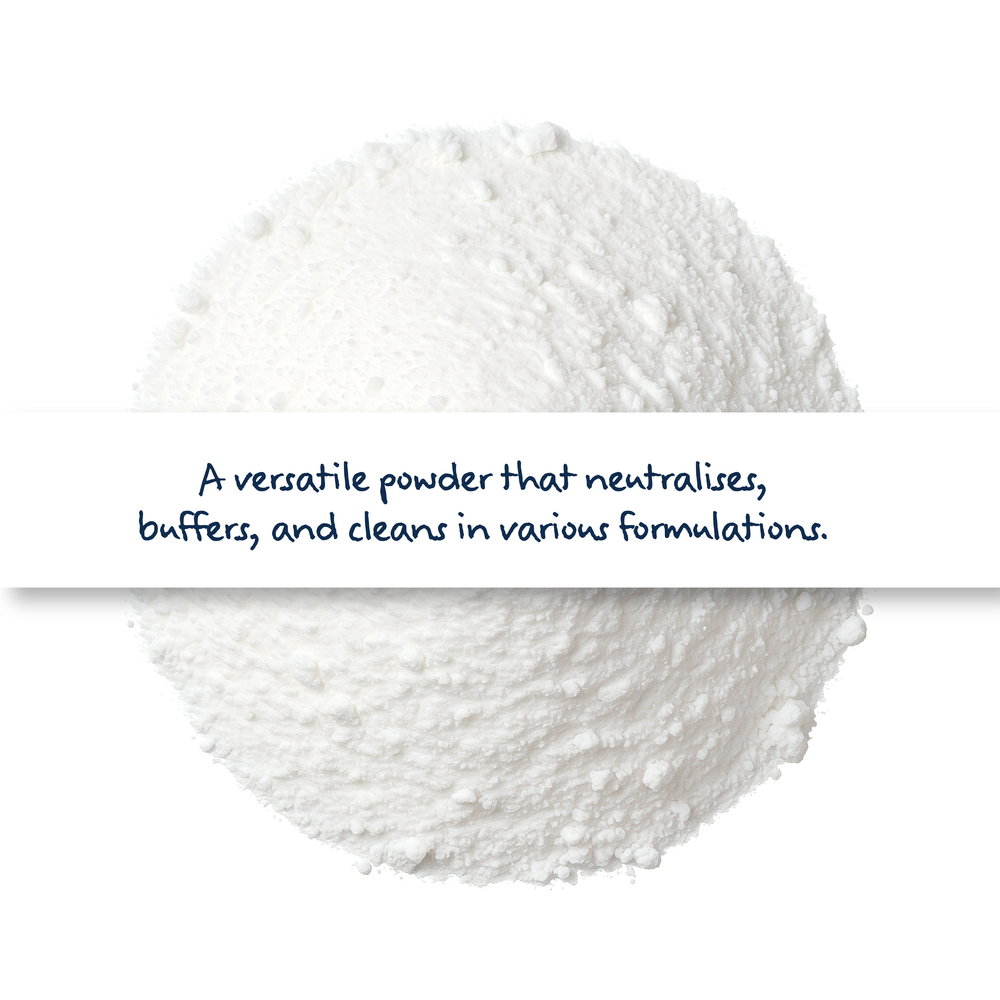 Sodium Bicarbonate, commonly known as baking soda or bicarbonate of soda, is a white crystalline powder with a slightly salty taste. It is a naturally occurring compound (NaHCO3) widely used for its buffering, neutralising, and leavening properties. Its versatility makes it valuable in a range of industries, including food, personal care, cleaning, and pharmaceuticals.